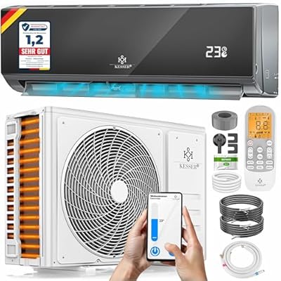 Descripción: KESSER? Aire acondicionado SET Split con funci?n wifi/App, refrigeraci?n A++/ calefacci?n A+, refrigerante R32, pantalla LCD, funci?n de temporizador, Split 9000 BTU/h / 2600 Watt - antracita... [leer más] Haga clic para ver la descripción entera